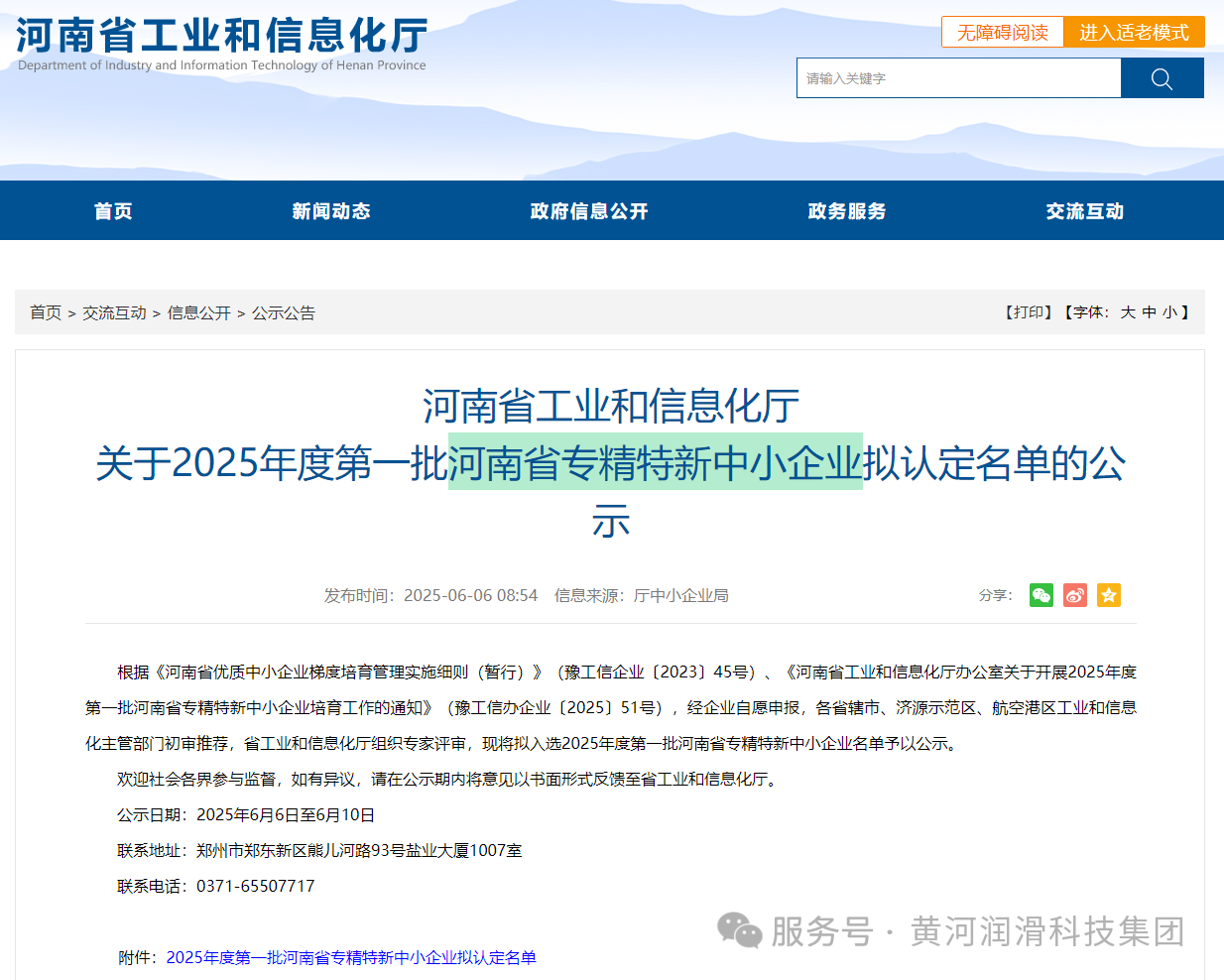 黄河润滑科技集团荣获河南省2025年第一批“河南省专精特新企业”